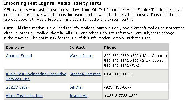 Microsoft 于2007年6月1日開始強(qiáng)制要求系統(tǒng)廠商如果想要拿到Vista 的Logo,就必須通過Windows Logo Program(WLP3.0X)中針對聲音質(zhì)量的規(guī)范SYSFUND-0118(Premium),SYSFUND-0127(Basic)。因此業(yè)界首次有了針對電子/計(jì)算機(jī)產(chǎn)品訂下聲音質(zhì)量的標(biāo)準(zhǔn)規(guī)范,也因?yàn)镸icrosoft在產(chǎn)業(yè)的領(lǐng)導(dǎo)地位使其能成為廠商愿意配合和改進(jìn)產(chǎn)品質(zhì)量的聲音規(guī)范。