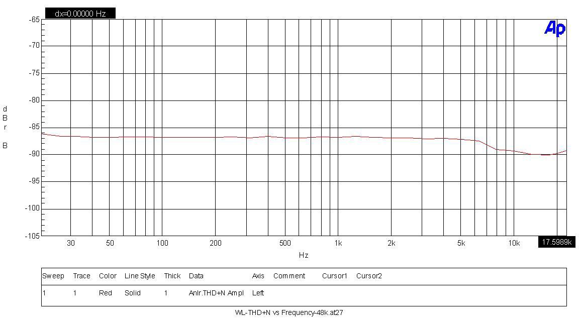 Microsoft所要求的測試比原始廠商要求的還要嚴(yán)格,他要求的不是只有1KHz的訊號量測而是在全頻的信號下做量測,也就是20Hz – 20KHz 分成31個頻段,所得到的值會有31個,再取最差的值,所以稱為THD+N VS Frequency。