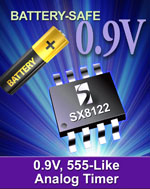 SX8122是唯一一種本身可在最低0.9V運行的單片應用定制方案,還整合了電池管理以及精密定時功能。它直接提供DC和脈沖輸出,可以驅(qū)動連續(xù)負載,以及有高閾值電壓的負載。