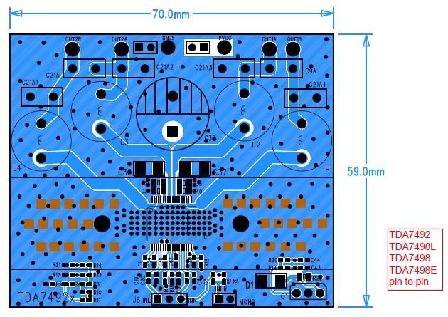 TDA7492/TDA7498L/TDA7498/TDA7498E是雙BTL D類音頻放大器,主要用在家庭影院和有源揚聲器.TDA7492/TDA7498L/TDA7498/TDA7498E單電源供電,效率高達90%,采用PowerSSO-36封裝(散熱片在頂部),良好的散熱性能保證超大功率輸出。整個系列管教兼容,便于客戶設計應用。