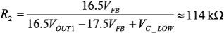 對(duì)于VOUT1 = 1.2 V, VOUT2 = 1.0 V, VFB = 0.8 V, VC_LOW = 3.3 V, VC_HIGH = 0 V, 和 R1= 49.9 kohm, R2 and R3可以如下計(jì)算
