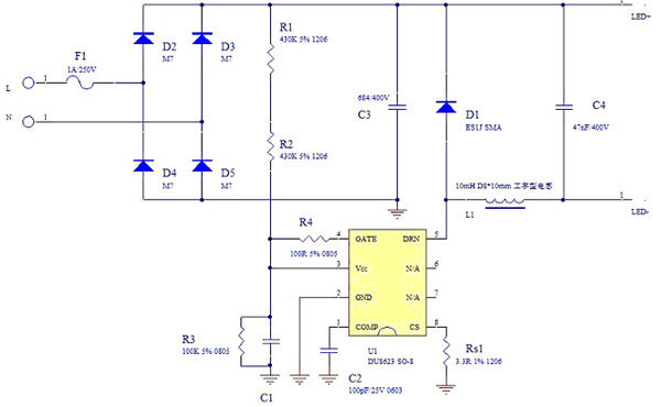 圖3:DU8623球泡燈應(yīng)用原理圖
