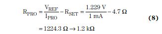 我們選用1mA值作為保護(hù)電流(IPRO),以計算RPRO值: