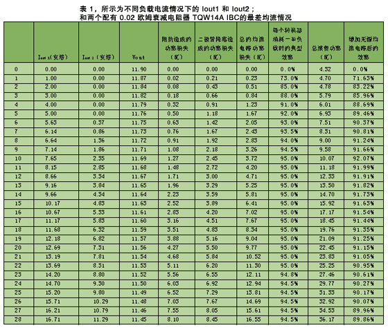 另外,表 1 顯示了由于電阻器和 ORing 二極管造成的功率損失,以及對效率的整個影響。從此表可以看出,無源均流遠(yuǎn)非完美。由于負(fù)載和 1% 標(biāo)準(zhǔn)部件造成的電路限制,在理論上,最差情況下,兩個轉(zhuǎn)換器之間的共享的 22A 負(fù)載的負(fù)載共享為 24.4%(基于 0.02 歐姆的衰減電阻器)。但是,這一負(fù)載共享是在損失了 4.05% 的效率后取得的。