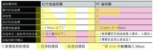 表1 RF遙控器和紅外線(xiàn)遙控器的性能比較