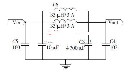 其中,L=33μH,C=4700μF,圖4為低通濾波器電路圖。