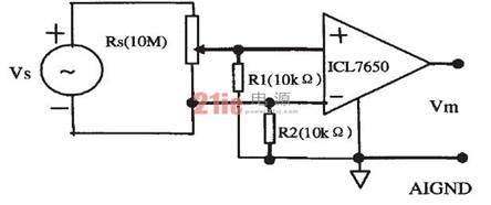 蓄電池輸出信號(hào)是一種浮動(dòng)信號(hào)。采用差分測(cè)量方式會(huì)最大限度地減小對(duì)被測(cè)電路的影響,同時(shí)也會(huì)減小測(cè)量誤差。在本調(diào)理電路中,采用高精度低漂移的集成運(yùn)算放大器ICL7650制作的差動(dòng)放大器將串入充放電線路的精密小電阻之上的差動(dòng)信號(hào)作為電流檢測(cè)信號(hào)。將并入蓄電池的大電阻分壓器獲得的小信號(hào)作為電壓信號(hào)。為消除干擾,用兩個(gè)等值電阻分別接于差動(dòng)放大器的兩輸入端與信號(hào)地之間。將兩個(gè)差動(dòng)放大器的輸出信號(hào)送人USB采集模塊的兩個(gè)輸入通道以完成信號(hào)調(diào)理及采集。調(diào)理電路見圖2、圖3。
