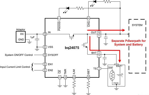 電池充電器的一般方法是將系統(tǒng)直接連接到電池,讓充電器同時(shí)為電池和系統(tǒng)供電。然后,對(duì)系統(tǒng)的總電流進(jìn)行穩(wěn)壓,這樣做存在幾個(gè)問(wèn)題。特別是低電池電量啟動(dòng)、終止干擾和早期計(jì)時(shí)器超時(shí)等問(wèn)題。電源路徑管理通過(guò)對(duì)電池電流和系統(tǒng)電流進(jìn)行分別監(jiān)測(cè),消除了這些問(wèn)題[2]。