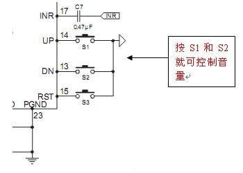 電子音量(Digital Volume):通常采用輕觸開關(guān)(又稱:微動開關(guān))對地(0V)接通,改變PIN端電平達(dá)到調(diào)節(jié)音量的目的。
