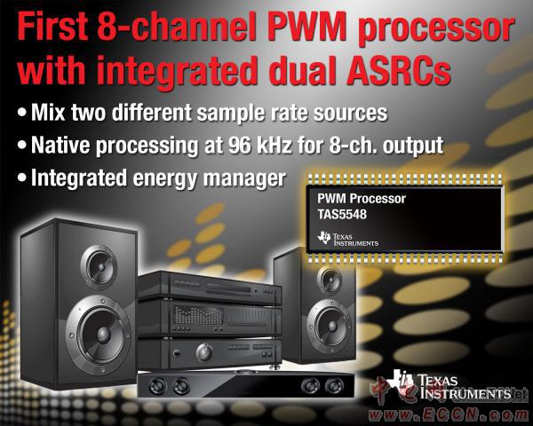 TAS5548 的 40kHz 音頻帶寬不但符合 Dolby®True HD 與 DTS-HD 標準,而且還可實現無與倫比的多通道性能。設計人員可通過豐富的音頻處理功能優(yōu)化產品,如 7 頻帶參數均衡 (EQ)、高低音控制、音量及響度控制、動態(tài)范圍壓縮 (DRC) 以及輸入輸出混合等。