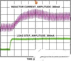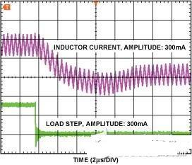圖2b示出了負(fù)載電流突增300mA時(shí),負(fù)載電流和電感電流波形。