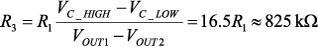對于VOUT1 = 1.2 V,VOUT2 = 1.0 V,VFB = 0.8 V,VC_LOW = 3.3 V,VC_HIGH = 0 V,和R1= 49.9 kohm,R2 and R3可以如下計(jì)算