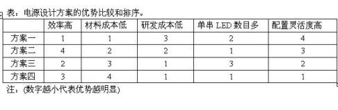下表對(duì)LED路燈四種電源設(shè)計(jì)方案的優(yōu)勢(shì)進(jìn)行了比較并排序。