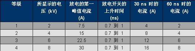 表 1、IEC 61000-4-2 波形參數(shù)。