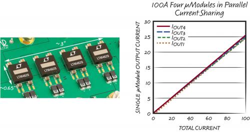 100A Four uModules in Parallel Current Sharing: 4 個(gè) µModule 并聯(lián)均流 100A