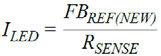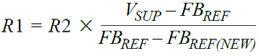 電阻分壓器的必需值可以使用公式1計算,其中VSUP是輔助調(diào)節(jié)電壓, FBREF(NEW)是RSENSE兩端的目標(biāo)電壓。