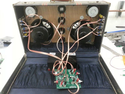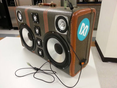 輕便、聲音響亮、時(shí)尚!在一個(gè)復(fù)古的手提音箱上安裝一組揚(yáng)聲器、無(wú)源交叉點(diǎn)開關(guān)、一個(gè)放大器和幾個(gè)可充電電池,就制作成了一款雖稍顯笨重但具有便攜性、聲音響亮的立體聲音響器材。這就是“boomcase”!