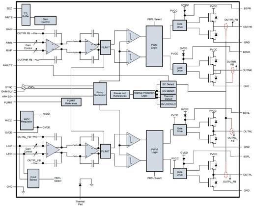 For feature compatible devices see: Power Pad up device 2x50W TPA3116D2, Power Pad down 2x15W TPA3130D2 and 2x30W TPA3118D2.