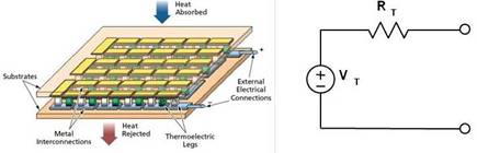 圖 2 熱電堆陣列和簡單的 TEG 電氣模型