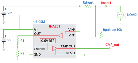 分流監(jiān)視器 (CSM) 是一種高精度、高增益差分電流感測放大器,經(jīng)常被用來監(jiān)視輸入和輸出電流。圖2顯示的是其典型配置。這個特定器件集成了一個開漏比較器;此比較器可被設(shè)定為在預(yù)先設(shè)置的線路電流上跳變、鎖存和復(fù)位。