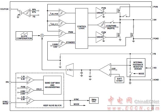 2 MHz switching frequency with optional synchronization input from 1.2 MHz to 2.5 MHz