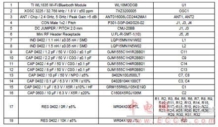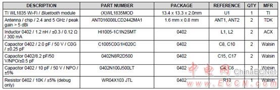 WL1835MOD參考設(shè)計(jì)材料清單: