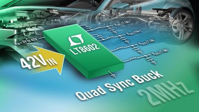 凌力爾特的 LT8602 是一款 42V 輸入、高效率、4 輸出單片同步降壓型開關(guān)穩(wěn)壓器。其 3V 至 42V 輸入電壓范圍使該器件非常適合汽車應(yīng)用,這些應(yīng)用必須穩(wěn)定地通過(guò)最低輸入電壓低至 3V 的冷車發(fā)動(dòng)和停-啟情況以及超過(guò) 40V 的拋載瞬態(tài)。正如我們?cè)趫D 1 中所能看到的那樣,其 4 通道設(shè)計(jì)提供 4 個(gè)獨(dú)立輸出,高壓 2.5A 和 1.5A 通道以及兩個(gè)較低電壓的 1.8A 通道,可提供低至 0.8V 的電壓,從而使該器件能夠驅(qū)動(dòng)現(xiàn)有之電壓最低的微處理器內(nèi)核。其同步整流拓?fù)渚邆涓哌_(dá) 94% 的效率,而突發(fā)模式 (Burst Mode®) 工作在無(wú)負(fù)載備用情況下保持靜態(tài)電流低于 30µA (所有通道均接通),從而使該器件非常適合始終保持接通的系統(tǒng)。