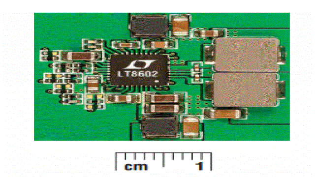 圖 3:LT8602 四輸出解決方案占板面積 (2x實(shí)際尺寸)