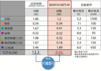 本產(chǎn)品利用ROHM多年積累的汽車音響用系統(tǒng)電源的技術(shù)訣竅,實現(xiàn)了以高效 DC/DC轉(zhuǎn)換器為中心的最佳電源系統(tǒng)。本產(chǎn)品的推出使ROHM以往產(chǎn)品13.3W的運行功率降低到4.66W,成功地降低功耗65%左右。作為汽車音響用系統(tǒng)電源IC,實現(xiàn)了 業(yè)界最低的運行功率。
