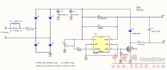 Infineon公司的ILD4001是用來(lái)驅(qū)動(dòng)室內(nèi)和戶外大功率LED的滯后降壓LED控制器,可驅(qū)動(dòng)外接MOSFET功率晶體管,LED驅(qū)動(dòng)電流可達(dá)350mA到3A,電源電壓高達(dá)42V,采用DC電壓或PWM信號(hào)進(jìn)行調(diào)光.本文介紹了ILD4001主要特性,框圖和應(yīng)用框圖,以及7W/10WMR16 LED燈驅(qū)動(dòng)板主要特性,電路圖,材料清單和PCB設(shè)計(jì)圖.