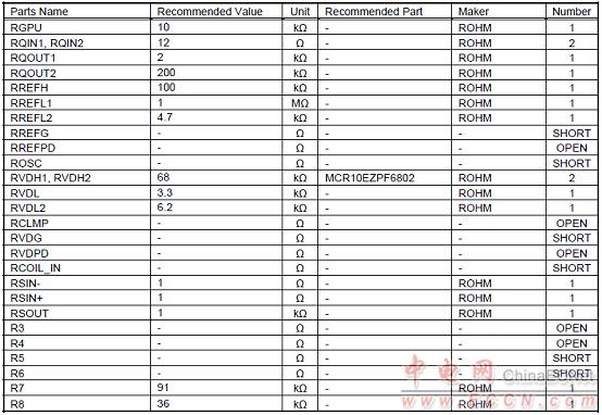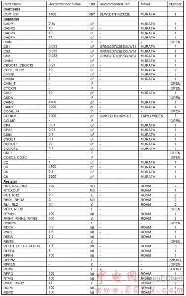 BD57020MWV典型應(yīng)用電路中材料清單(BOM):