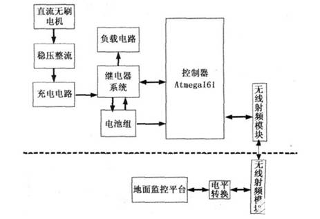 控制器采集到電源系統(tǒng)中的信息后,通過無線傳輸設(shè)備將該數(shù)據(jù)實(shí)時傳輸給地面。地面監(jiān)控平臺還可以發(fā)送一些指令給mega16l, 通過控制繼電器開關(guān)來控制電池充放電, 從而實(shí)現(xiàn)監(jiān)測和控制飛機(jī)的目的。機(jī)上電源模塊由兩節(jié)英特曼電池有限公司生產(chǎn)的鋰電池組成, 電池組電量充足時電壓為8?? 4V.電池的荷電量與整個供電系統(tǒng)的可靠性密切相關(guān), 電池剩余電量越多, 系統(tǒng)的可靠性越高, 因此飛行時能實(shí)時獲得電池的剩余電量, 這將大大提高飛機(jī)的可靠性。