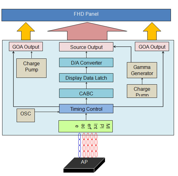 示意圖說明:驅(qū)動芯片配合Timing controller 工作原理