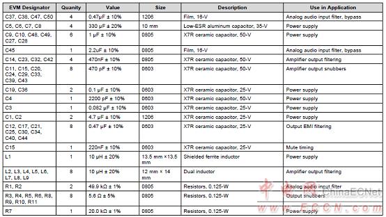 圖2TAS5404-Q1典型應(yīng)用電路的材料清單: