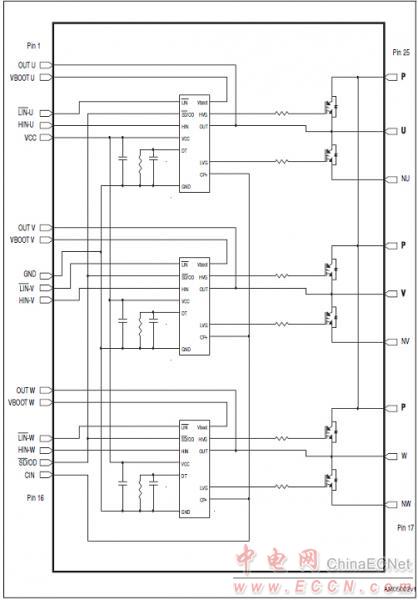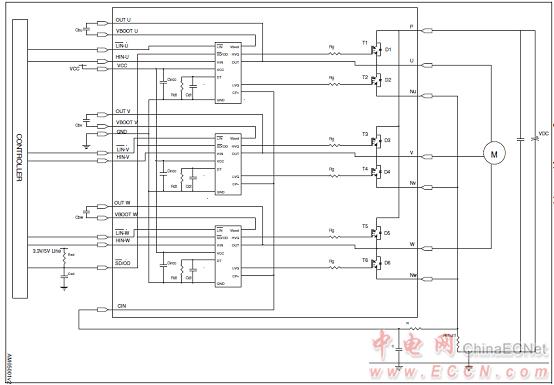 圖2. STGIPS20C60應(yīng)用電路圖