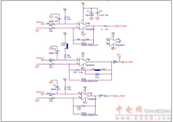 圖7.馬達(dá)控制平臺P-NUCLEO-IHM001電路圖:電流檢測調(diào)理電路