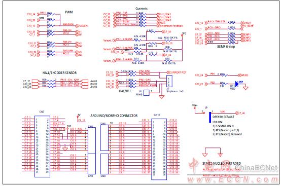 圖10.馬達(dá)控制平臺P-NUCLEO-IHM001電路圖:STM32 MCU引腳