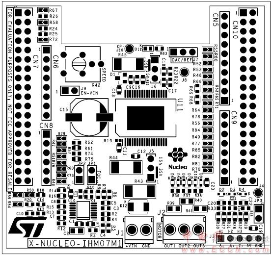 圖11.馬達(dá)控制平臺P-NUCLEO-IHM001 PCB頂層元件布局圖 |