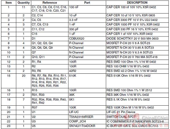 USB CD/PD充電器解決方案(容性電纜)電路材料清單: