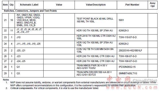 評(píng)估板FRDM-HB2001-EVM材料清單: