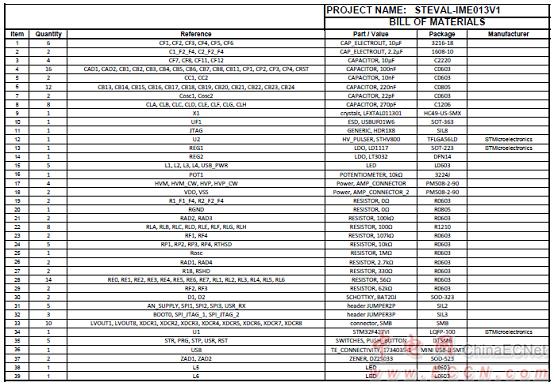 評(píng)估板STEVAL-IME013V1材料清單: