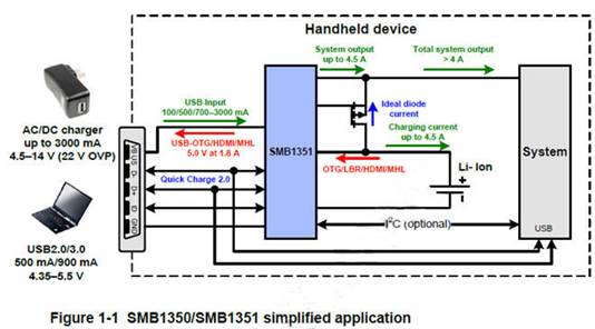 Charge IC: Programmable single cell Li-Ion battery charger: Qualcomm SMB1351, feature