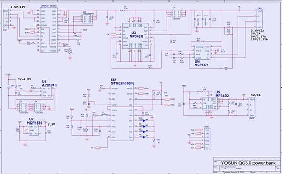 圖示3-大聯(lián)大友尚推出的雙向QC3.0快充移動(dòng)電源完整解決方案之線路圖