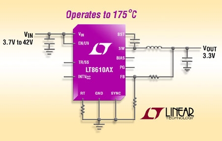 照片說明:42V、3.5A (IOUT)、同步降壓型轉(zhuǎn)換器可工作在 175°C
