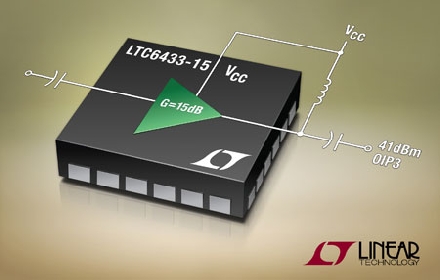 | LTC6433-15 15dB增益部件在100kHz至1.4GHz頻率范圍內(nèi)提供47dBm OIP3線性度和低噪聲 |
