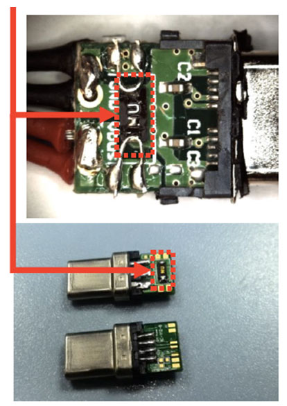 而隨著USB Type-C應(yīng)用的推廣,除了過壓和過流保護(hù),新的保護(hù)需求也逐漸被發(fā)現(xiàn),比如過溫保護(hù)。由于USB Type-C的體積小,引腳間距小,又要承載最高100W的功率,所以一旦電纜接口端有異物污染,很容易造成內(nèi)阻的增加,進(jìn)而引發(fā)過熱甚至是煙火危險。所以在線纜端加入過溫保護(hù)的必要性逐漸被人們所認(rèn)識,日本的MCPC(Mobile Computing Promotion Consortium)已經(jīng)有涉及到過溫保護(hù)的條款,相信未來歐美及中國市場也會跟進(jìn)。