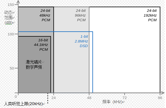 圖 1:一些聲頻格式的動態(tài)范圍和帶寬