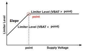 電池跟蹤功能開啟后,當(dāng)電池電壓低于設(shè)定值,HT862能隨電池電壓降低而逐步減小增益以限制電池電流,此舉進(jìn)一步支持了小容量低電流電池的應(yīng)用,并能大幅延長電池續(xù)航時(shí)間,還能防止破音和過大的電流需求,減小電池端電壓波動(dòng),降低電池在低電量時(shí)提前進(jìn)入鎖死狀態(tài)的風(fēng)險(xiǎn),示意如下圖3。其中可調(diào)整電池跟蹤拐點(diǎn)(point)、電池跟蹤斜率(Slope)。對(duì)于電池容量較小、輸出電流能力小的電池應(yīng)用,適合高point值(如3.8V)、大Slope值(如≥3V/V);而對(duì)于電池容量較大、輸出電流能力強(qiáng)的電池應(yīng)用,適合低point值(如3.3V)、小Slope值(如≤3V/V)。