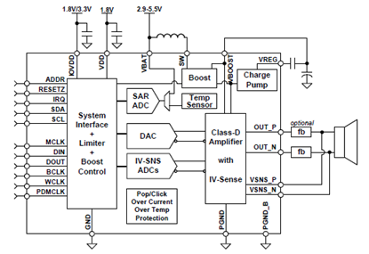 • DAC + Class-D SNR 111 dB at 1%THD+N/8 Ω