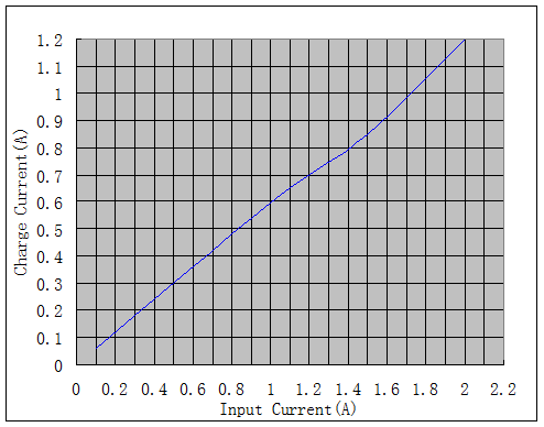 ANT2801自適應(yīng)5V充電器,或者USB接口5V功能。即小于100mA/5V充電設(shè)備通過(guò)ANT2801都能給兩節(jié)鋰電串聯(lián)7.4V正常充電;大于2A/5V充電設(shè)備通過(guò)ANT2801能自動(dòng)提升充電電流,保證充電時(shí)間。如下圖不同5V充電器電流 (Input Current)跟對(duì)兩節(jié)鋰電串聯(lián)7.4V充電電流(Charge Current)關(guān)系(典型值):